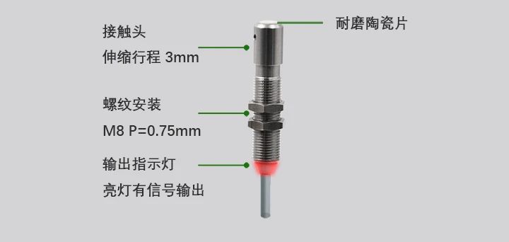 ECOTTER自主研發(fā)了接觸式傳感器S2-CS078和探桿式S2-CS089系列,常用于接觸檢測、原點(diǎn)定位等工業(yè)自動(dòng)化場景,S2-CS078接觸面帶耐磨陶瓷片,產(chǎn)品使用更長久。