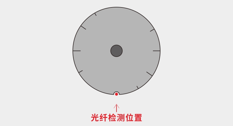 這里我們看一個(gè)案例,如下圖對(duì)一個(gè)圓型工件進(jìn)行定位,利用光纖對(duì)缺口的位置進(jìn)行檢測(cè),光纖在缺口位置的光值和工件上其它邊緣位置的光值會(huì)有較大的區(qū)別從而進(jìn)行區(qū)分判斷。圓型工件其它位置的裂縫也不會(huì)和缺口處的光值相同,能穩(wěn)定判斷。