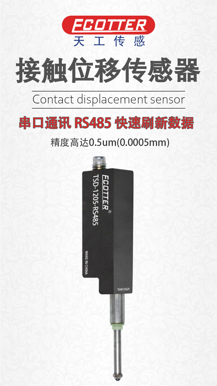ECOTTER亞微米級(jí)接觸式位移傳感器TSD-1205-RS485即將上市,這款接觸位移傳感器的精度達(dá)到0.0005毫米,量程是12毫米,絕對(duì)型刻度尺脈沖系統(tǒng),帶RS485 MODBUS RTU,可以上傳數(shù)據(jù),擁有較快的數(shù)據(jù)刷新速度2000次/秒,適用于工業(yè)自動(dòng)化的絕大多數(shù)測(cè)量場(chǎng)景。