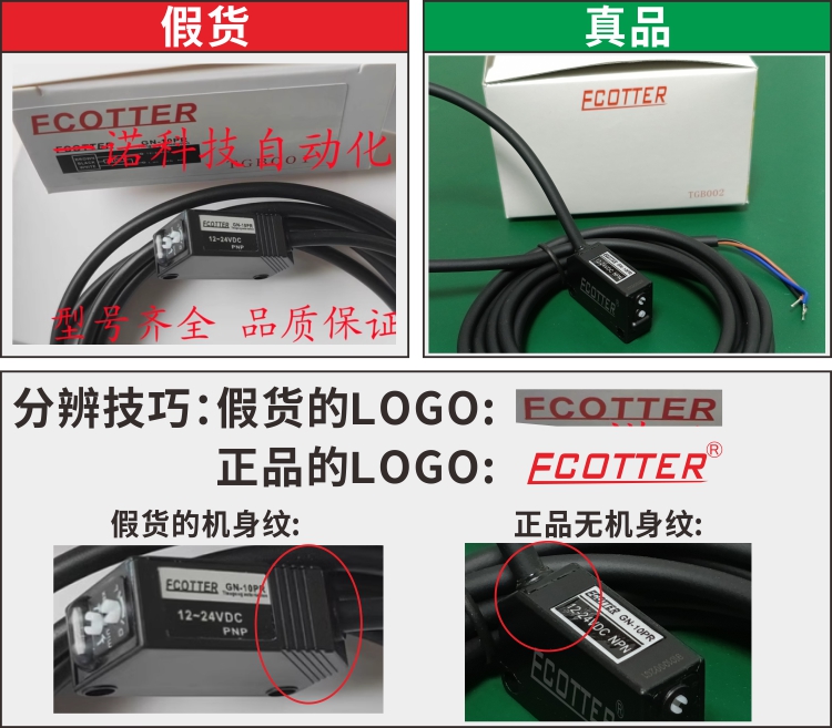 ECOTTER天工傳感在工業(yè)自動(dòng)化行業(yè)有二十多年的品牌歷史,我們通過優(yōu)質(zhì)的技術(shù)服務(wù)和選型經(jīng)驗(yàn)獲得客戶的信任。隨意盜用我們的品牌,提供劣質(zhì)產(chǎn)品和服務(wù)給客戶,嚴(yán)重侵害客戶利益,嚴(yán)重傷害ECOTTER天工傳感品牌信譽(yù)。正告那些制假售價(jià)企業(yè)及個(gè)人遵守社會(huì)公序良德,遵紀(jì)守法,良性競(jìng)爭(zhēng),立即停止侵權(quán)。請(qǐng)客戶選購(gòu)時(shí)選擇官方渠道,辨明正品,感謝大家配合及支持!