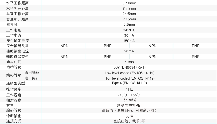 非接觸式安全門開關(guān)采用無線射頻識別應(yīng)用技術(shù),無論周圍發(fā)生何種變化,都要安全地進行開關(guān),非接觸式安全開關(guān)工作穩(wěn)定可靠??梢愿鶕?jù)風(fēng)險評估和機器設(shè)計的要求使用。