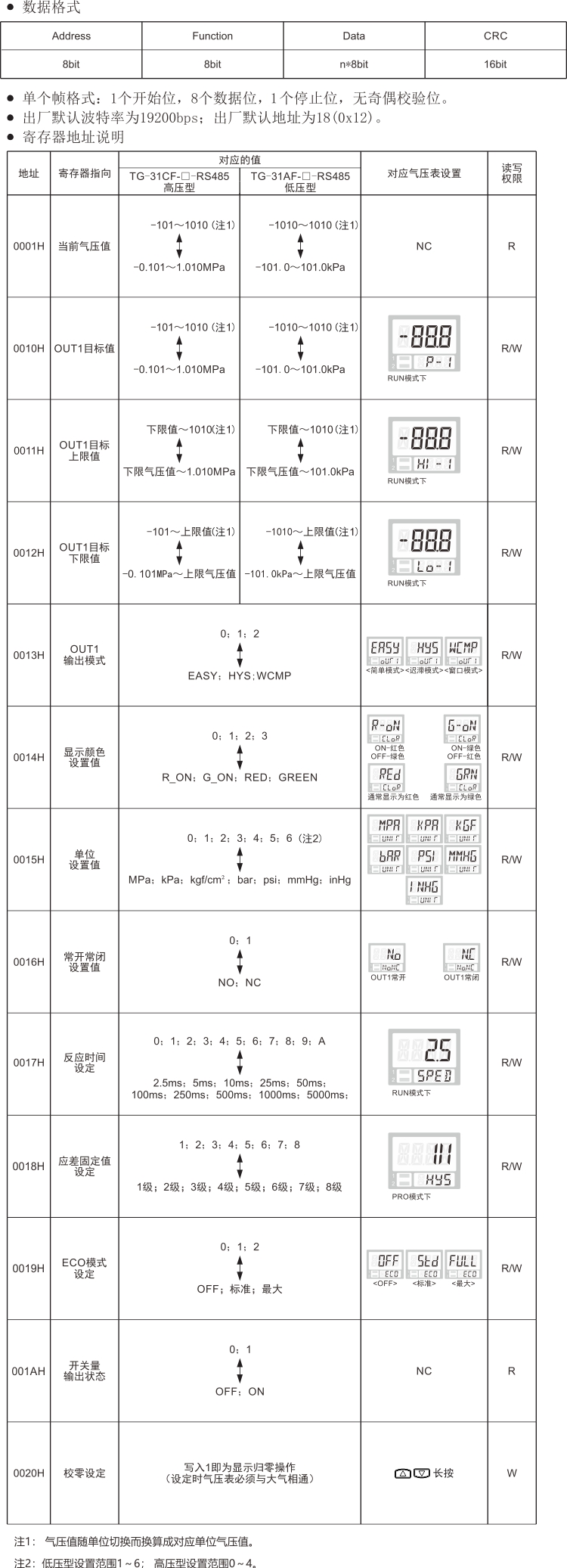 ECOTTER 這款485通訊壓力表的通訊說明如下: