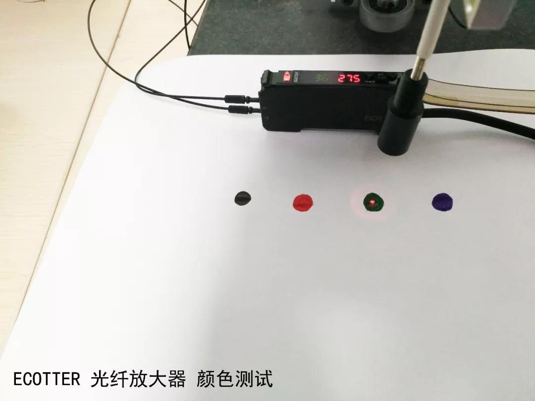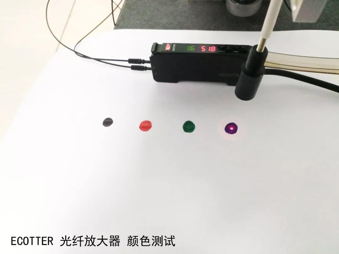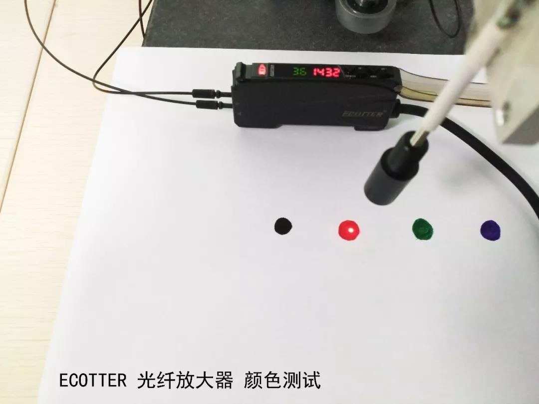 另外,如果兩個(gè)顏色比較接近,那么要用到高精度的光纖放大器來做區(qū)分檢測。ECOTTER 的FG-40 光纖放大器 的分辨率可達(dá)到 12bit 的精度,可以對接近的顏色做檢測判斷。