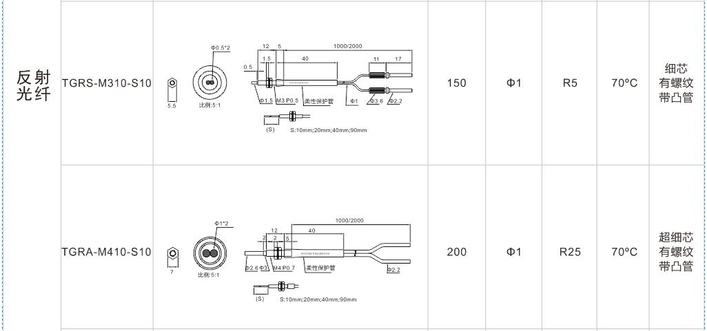 有螺紋有凸管系列光纖