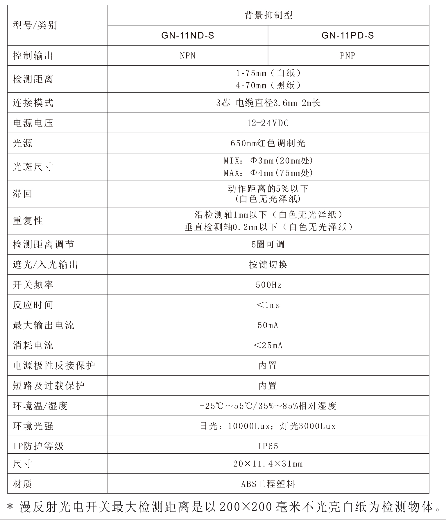 背景抑制光電開關GN-11D-S