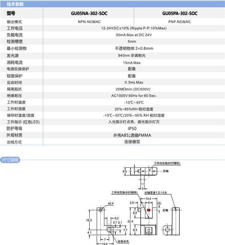 槽型光電開(kāi)關(guān)GU05-302-SOC