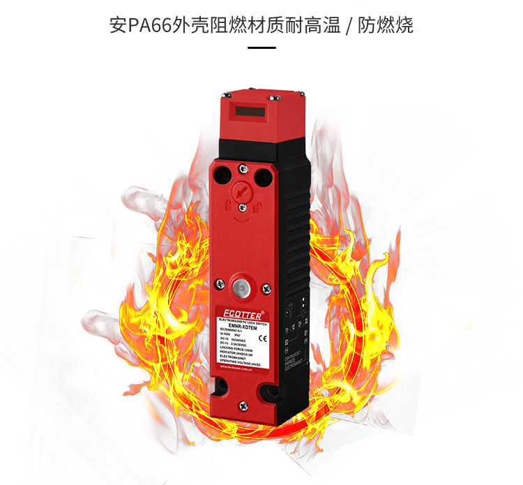 安全門開關(guān)外殼采用PA66阻燃材料,耐高溫,并電纜接頭防水,提高了產(chǎn)品本身的安全系數(shù)。