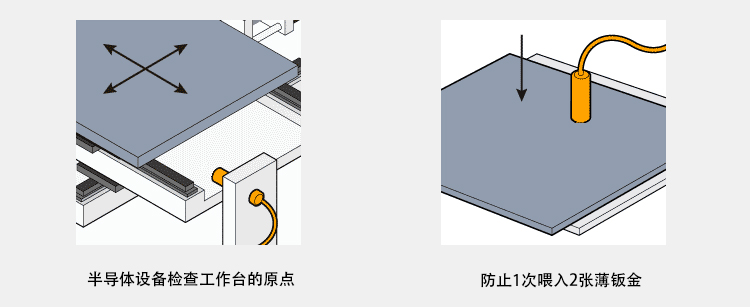 1、接觸傳感器對(duì)半導(dǎo)體設(shè)備檢測(cè)工作臺(tái)的原點(diǎn)定位,以微米為單位補(bǔ)償XY軸工作臺(tái)的熱位移。
