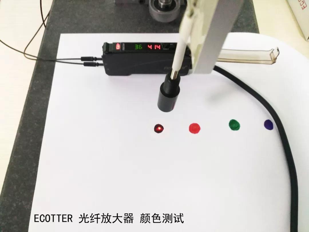 另外,如果兩個(gè)顏色比較接近,那么要用到高精度的光纖放大器來做區(qū)分檢測。ECOTTER 的FG-40 光纖放大器 的分辨率可達(dá)到 12bit 的精度,可以對接近的顏色做檢測判斷。